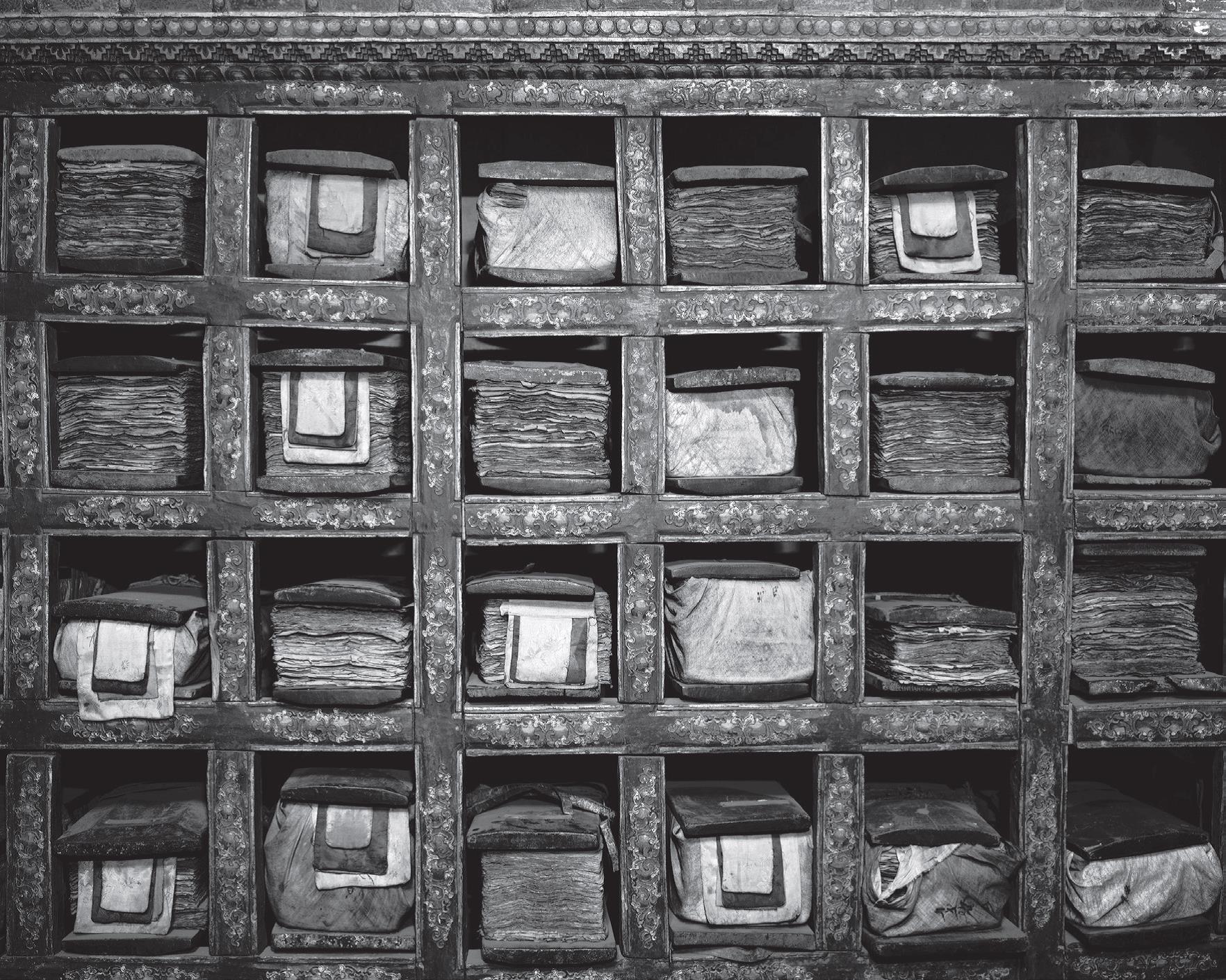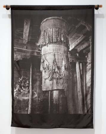 The current exhibition in the Gatehouse Gallery at di Rosa, in Napa, is titled From Two Worlds and consists of over 30 photographs by Bay Area photographer, Linda Conner. The exhibition is presented in two segments, each telling its own story. The first part is called Dark Forces and reflects Connor’s experiences while visiting and photographing monasteries in Tibet and Northern India. In her photographs the images of sacred deities and fierce guardian figures retain their force and mystery even through the ravages of time and desecration that occurred during the Cultural Revolution. Many of the black and white photographs, such as Banner, Hemis Monastery, Ladakh, India, 2003, are printed on silk and displayed in the manner of Tibetan thangka paintings, bringing together historic traditions and contemporary contexts. Connor often uses closely cropped images which omit distractions and provide a more intimate experience for the viewer. For example, in Library of Prayer Books, Ladakh, India, 2007, the neatly folded tomes are tucked into their ancient cubbies, yet appear ready for the next monk to peruse. For Conner, the work is a celebration of the unknown, where ancient ritual and imagery still evoke a visceral experience, transcending time as well as contemporary politics.