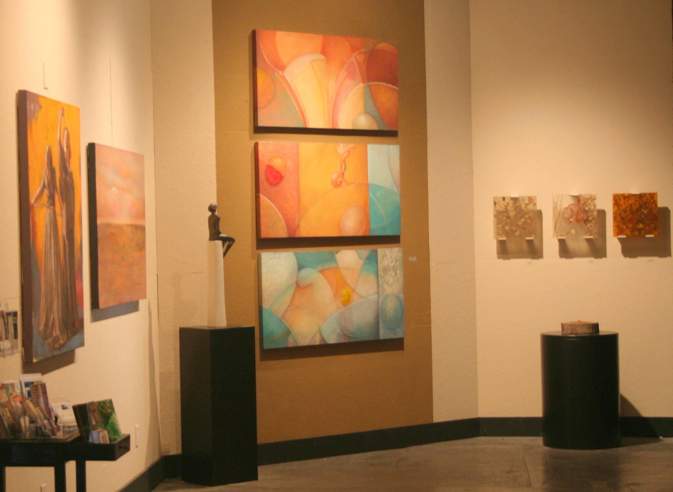The inaugural exhibition, Presence, highlights work by the diverse but complementary core group of artists. It was my task, and pleasure, to review and select work by these nine artists that reflects each of their unique styles as well as the vision of the gallery. It was quite exhilarating to design the exhibition in the midst of the gallery’s transformation from its former incarnation to its new beginning—walls were being painted and furnishing were changing as art was being installed. To say the least, a lot took place in a very short time to present a comprehensible and professional exhibition of quality artwork. Many positive things can be said about working with cooperative and professional artists.