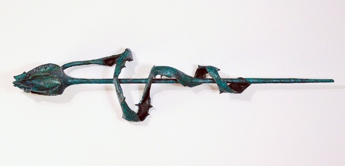 Currently on view is Jeff Kahn‘s kinetic sculpture collection, titled “Unseen Forces,” which explores balance and gravity and the way almost imperceptible air currents interact with them.