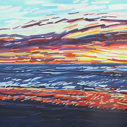 Colorful, Light-filled Pastel Landscapes by Jan Thomas. Influenced by strong shapes and contrast, Jan Thomas’s recent paintings reflect a keen awareness of abstraction in the landscape. Mixed Media Encaustics by Dan Scannell, who communicates a visual story of time and space through design, the placement of shapes, and quality of color.