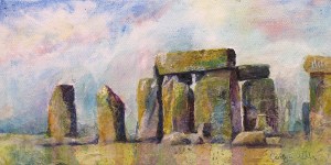 Mixed aqua media and collage by Carolyn Wilson, Featured Resident Artist. Full of personal history and layers of meaning, Carolyn’s current series of collage pieces capture her experience living and traveling in England.