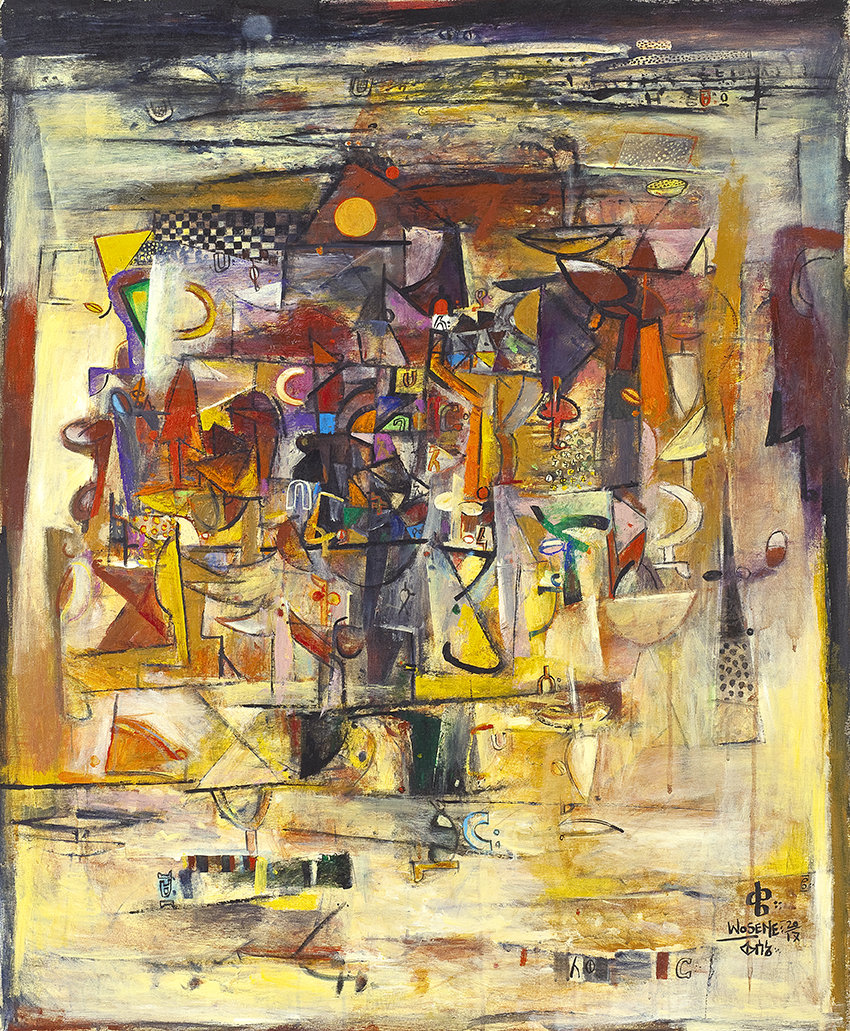 The Bay Area premiere of new paintings by Wosene Kosrof. Born in 1950 in the Arat Kilo district of Addis Ababa, Kosrof uses the script forms of his native Amharic as a core element in his paintings and sculptures, creating a new visual language that draws upon the artist’s Ethiopian heritage, while incorporating his experiences of living in the U.S.
