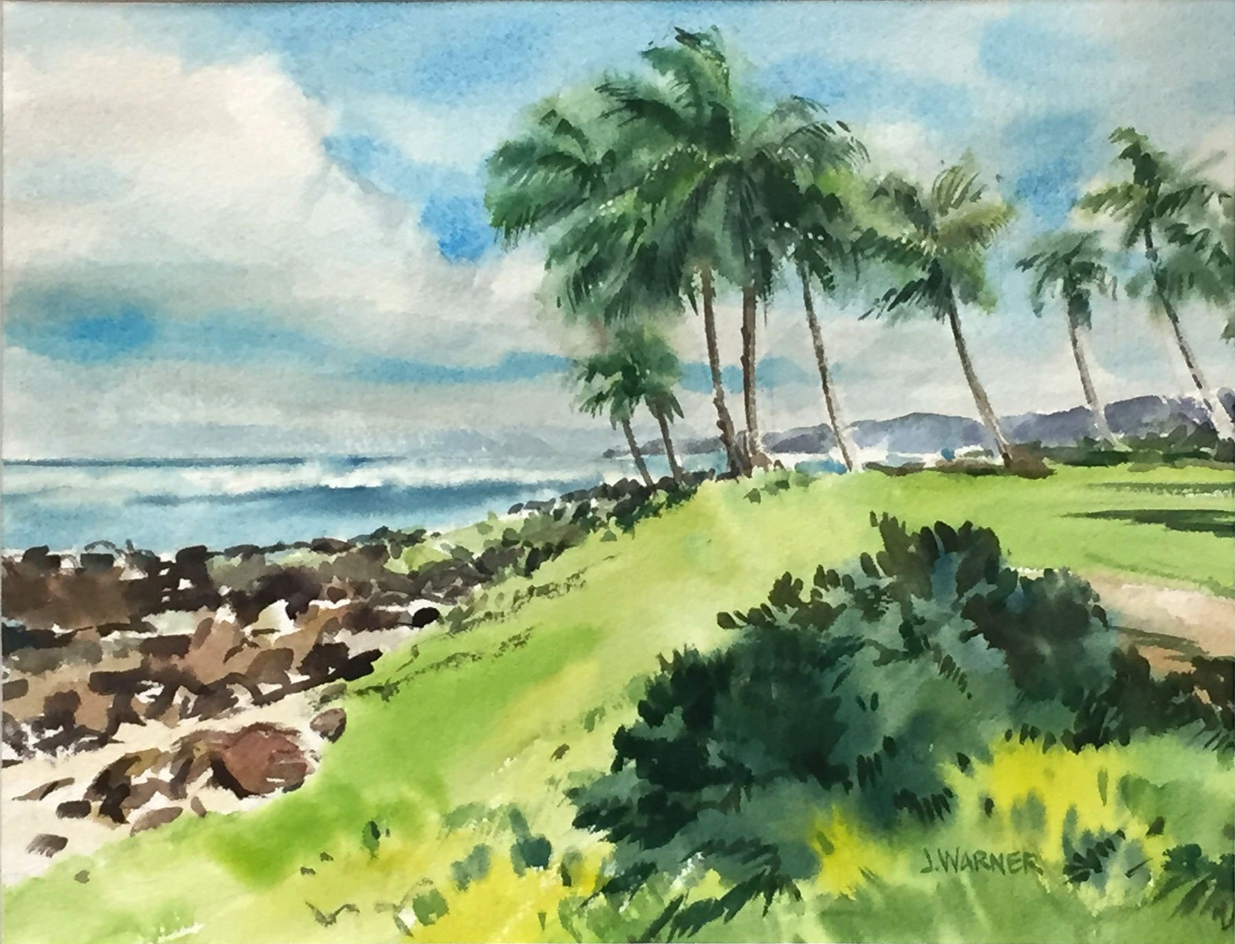John Warner creates watercolor paintings of coastal landscapes and seascapes from Canada to Mexico; Hawaii to California; and the Mediterranean. His inspiration comes from the ever changing light and reflections of bodies of water.