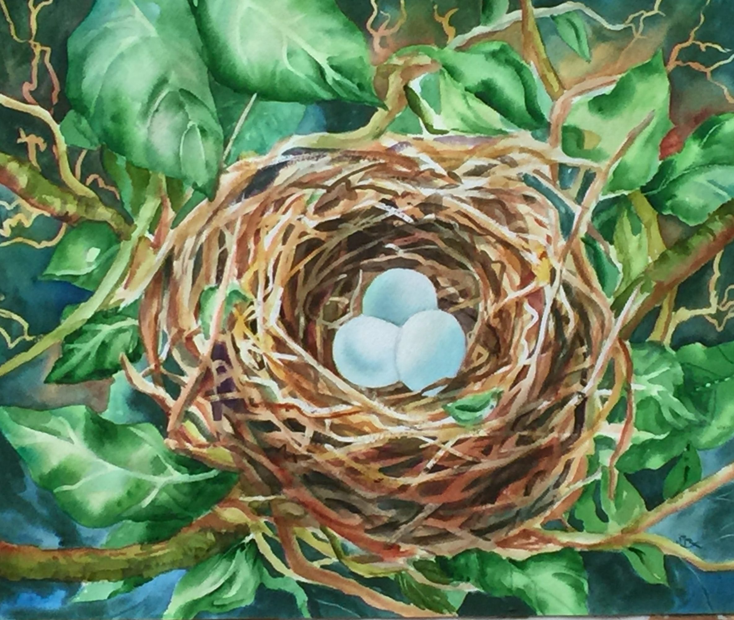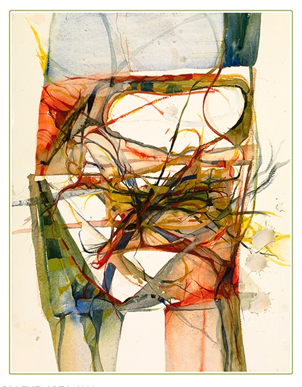 Nancy H Dempster creates drawings and watercolors, often with mixed media elements. She uses color and networks of intertwined lines to create worlds that evoke images at both extremes of the scale spectrum—organic structures at the cellular level, gas clouds in the vastness of intergalactic space.