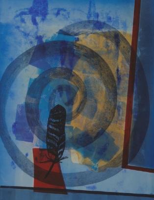 Featured Artist, Donna Broder, creates abstract art in different mediums, particularly printmaking with monotypes and wood cuts. Also showing are works by AGS members.