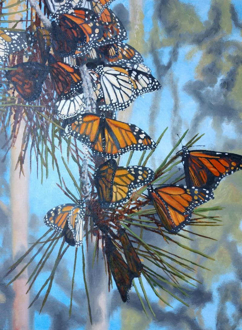 Donna Schaffer paints butterflies she entices to her garden by planting Zinnias, Salvia, Cosmos, Black-eyed Susans, and Milkweed. Ron Sumner’s poetic watercolor paintings of old barns, birds, landscapes, and water are featured in the Small Works Showcase.