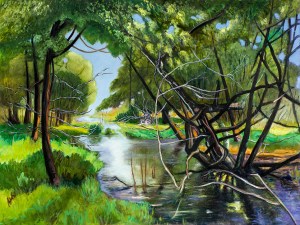 Pastels and Oil Paintings by James R. Reynolds. The paintings depict scenes within the Laguna’s watershed or animals that live there.