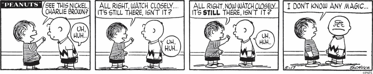 One of Schulz’s little-known pastimes: Magic. Featuring original Peanuts comic strips, animation cels, merchandise, and artwork.