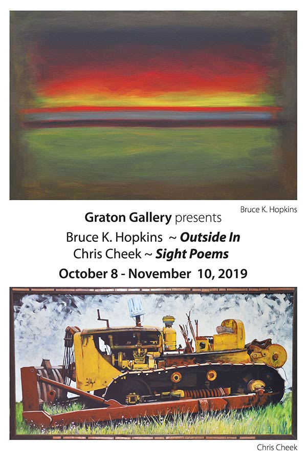 October 8 through November 10, Bruce K. Hopkins – Outside In and Chris Cheek – Sight Poems
