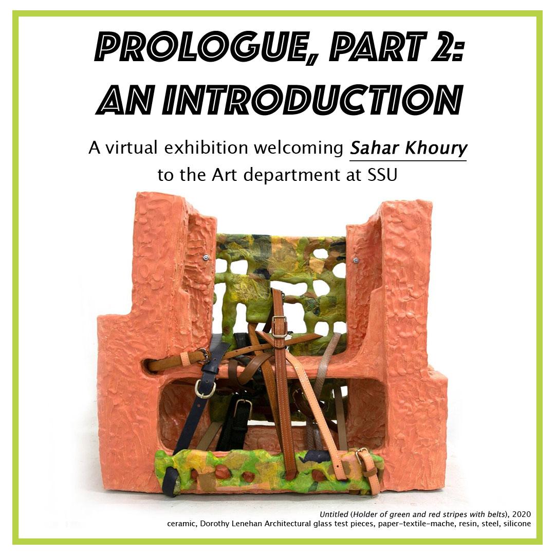 Online exhibition featuring work by new Art Department faculty member, Sahar Khoury. Her sculptures integrate abstraction, personal and political symbols, and an intuitive sensitivity to site.