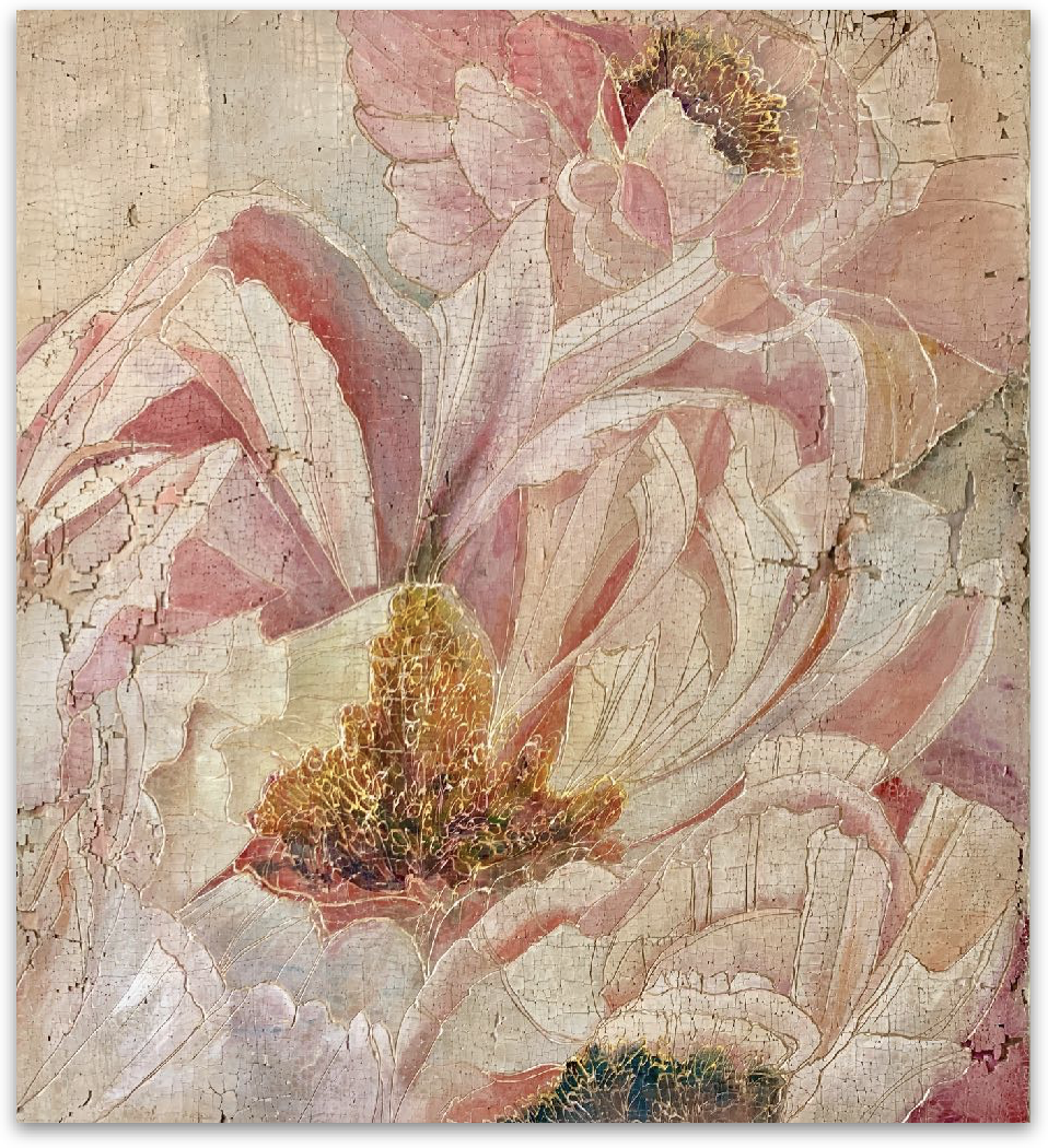 The Staircase Showcase features Gail Morgan’s Warmth of Wax, a collection that highlights the artist’s recent explorations of encaustic painting and monotype. Encaustic is an ancient art mixing beeswax and resin with heat to fuse layers, giving depth and translucence to the work.