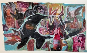 This exhibition reviews the revolutionary spirit of Chagoya and Maria as an artist-couple, artists-activists, and their decades-long contribution to the Bay Area arts scene. Chagoya’s unapologetically satirical creations alight in Western historical and pop-cultural imagery and icons to speak to complex issues such as immigration and other socio-economic challenges of our day. Maria’s colorful, playful canvases conceal and reveal themes of ecological collapse and power conflicts between humans and the natural world.