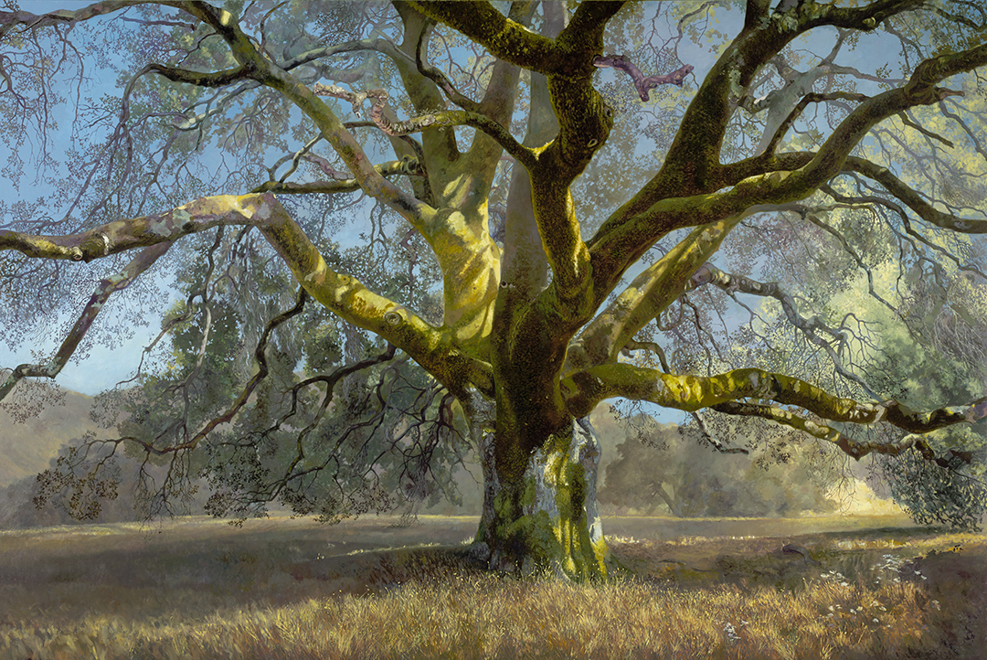 On view are nine 4’x6′ paintings from the Great Oaks series.