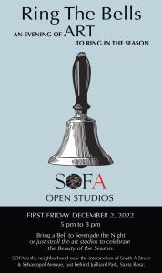 Art – Open Studios – Music – Community. Join us for a special First Friday evening of illumination, community, and art, celebrating the Winter Season and ringing in the New Year. The event is free and family friendly. Bring a bell to wear or ring as you stroll the neighborhood.