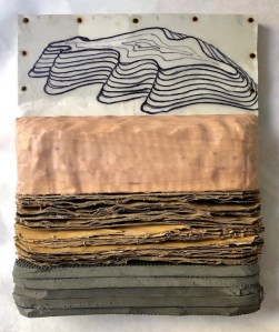 The first Palate to Palette exhibition features artist Susan Doyle and focuses on her Endangered Rivers series. Doyle uses a variety of materials such as aluminum cans, books, magazines, or even pieces of silk to explore ideas or compositions from many perspectives.
