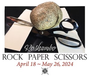 Juried Show, Anything made of or made on paper. Anything cut by scissors. Anything made of rock or stone or stoneware. Images of rock or paper or sissors.
