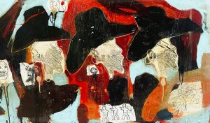 Paintings by Susan St.Thomas; this collection of new paintings represents a liberating shift of direction in her artwork. The beginning process is free and intuitive. A theme emerges as the painting develops and a story is implied but not explained. In addition to large acrylics on canvas, there are vibrant watercolor works on Arches paper and acrylic monotypes.