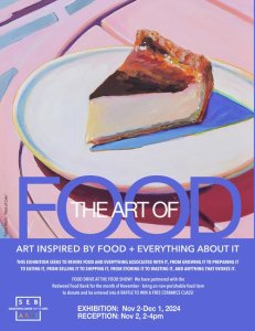 This is a colorful show includes fantastic imagery and large sculpture. The Art of Food has partnered with the Redwood Food Bank for a Food Drive. Please bring any non-perishable food item to donate to be entered in a raffle to win a free ceramic class, a one-of-a-kind bowl by Robert Brent, or a print by Sally Baker!