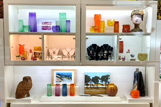 For the Holiday Season our Staircase Showcase features hand-crafted 3-D offerings; including ceramics, glass, and wood work.