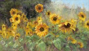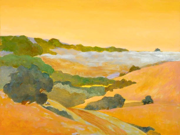 Light-filled paintings by Katy Boggs are an exploration of light—how it shapes form, reveals color, and defines what we see. She is drawn to moments where light is felt as much as seen: filtering through dense leaves, towering in the crowns of trees, glinting off cresting waves, or softening into the quiet glow of a sunset.